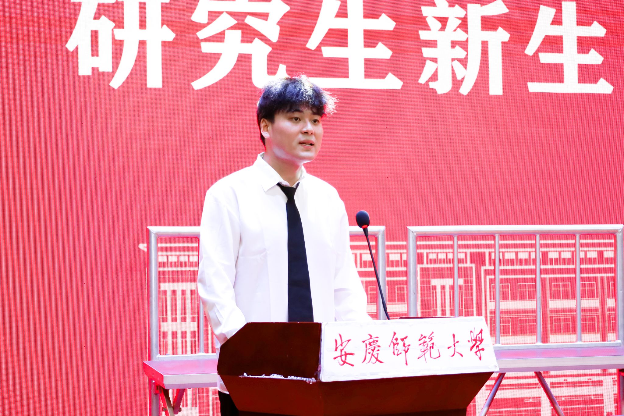 本科生新生代表外国语言文学类1班余思诺用充满朝气的话语,抒发了对大学生活的无限憧憬和刻苦学习的决心。研究生新生代表英语笔译专业张信则分享了对未来科研生涯的规划与期待,表示将秉承学术精神,勇攀知识高峰。