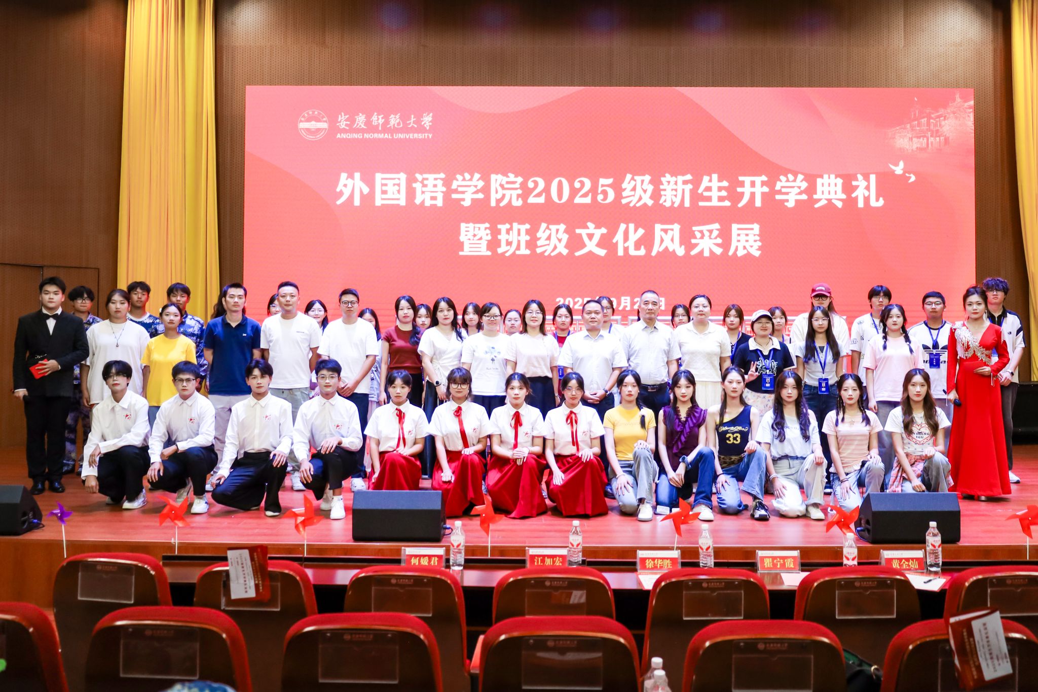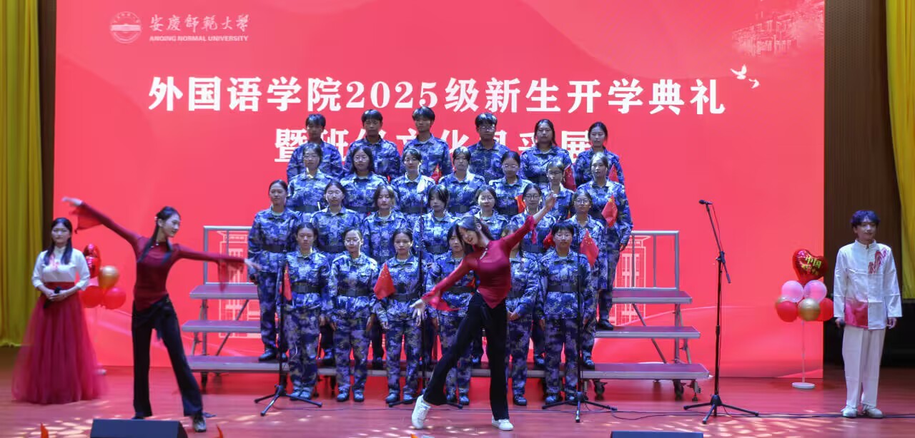 刻有“博外之长,共语辉煌”字样的荧光棒、“噼啪”作响的手掌拍、随节拍舞动的小红旗……近日,外国语学院“烽火忆峥嵘·新程谱华章”主题新生班级文化风采展在图书馆东报告厅举行。学院2025级本硕新生以班级为单位献上精彩演出,为2025级本科新生21天的军训生活画上了圆满句号,并展现全体新生将以昂扬姿态共同迎接即将开启的大学“新篇章”。