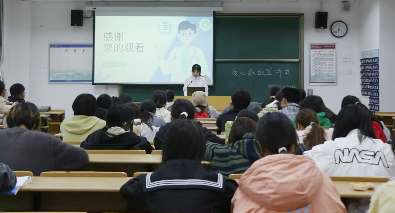 线下动员聚合力。外国语学院在E316教室举办爱心献血动员大会,近百余名学生积极报名参加。会上,宣讲同学结合自身实际与真实案例,详细讲解了献血的意义、流程及注意事项,用真挚的语言传递“奉献爱心,点亮生命”的正能量。大会现场还展示了往届献血活动的精彩照片,直观呈现同学们的奉献瞬间,进一步激发了在场同学的参与热情。