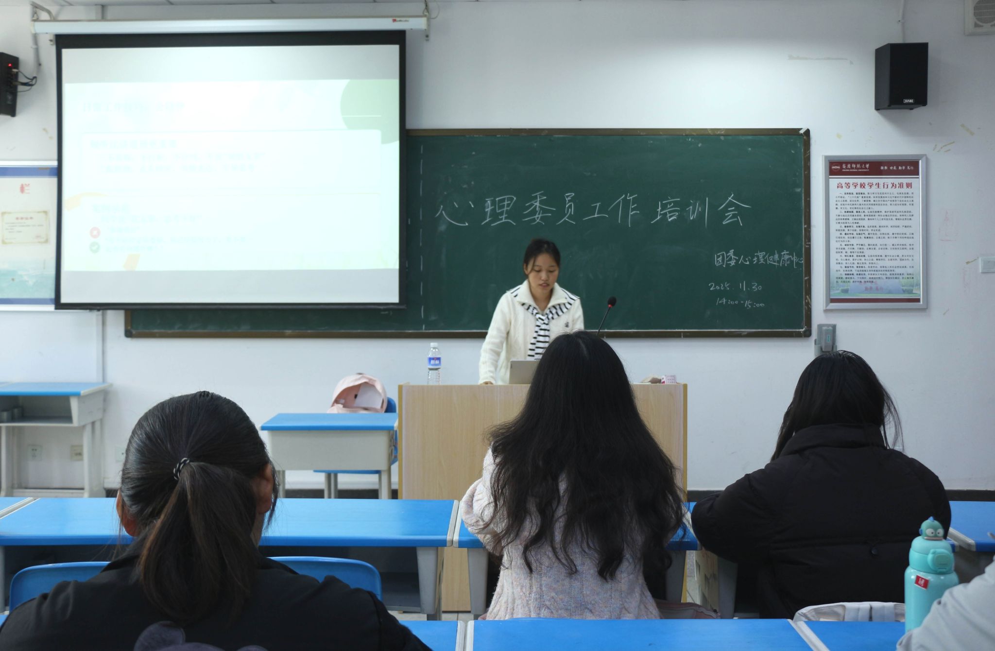 理论培训主要介绍了心理委员班级工作实操知识。培训指出,心理委员是班级的“暖心探头”,核心要做好“察情绪、会陪伴、善上报”三件事。培训通过具体案例指导心理委员学会识别情绪异常的“危险信号”,关注关爱重点人群。培训强调心理委员在日常工作中要做好“三件小事”:建立信任,用“小温暖”拉近距离;会陪伴,倾听比讲道理管用;常反馈,每周1分钟“报平安”。培训还公布了学院和学校的心理支持资源,提醒了三大“工作禁区”,明确了工作边界。